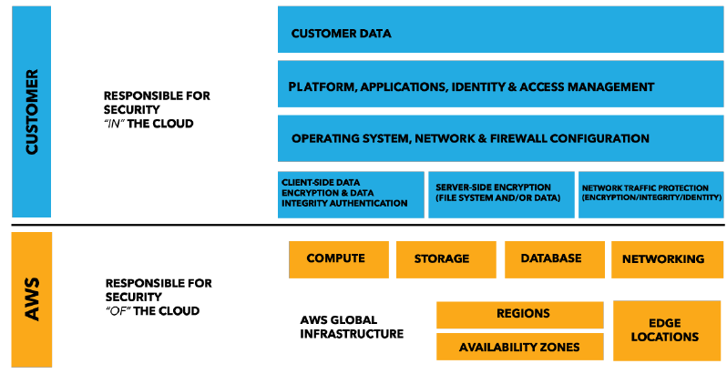 Amazon Web Services is responsible for protecting the global infrastructure that runs all of the services offered in the AWS cloud. This infrastructure is comprised of the hardware, software, networking, and facilities that run AWS services.
