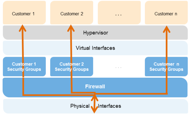 Different instances running on the same physical machine are isolated from each other via the Xen hypervisor. In addition, the AWS firewall resides within the hypervisor layer, between the physical network interface and the instance’s virtual interface.