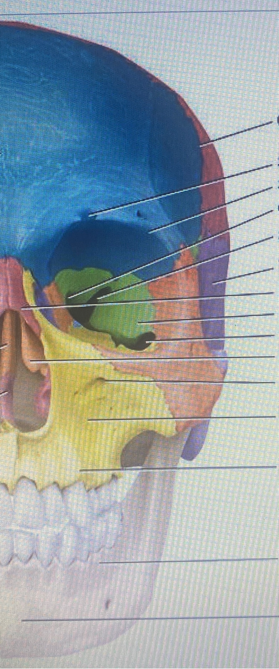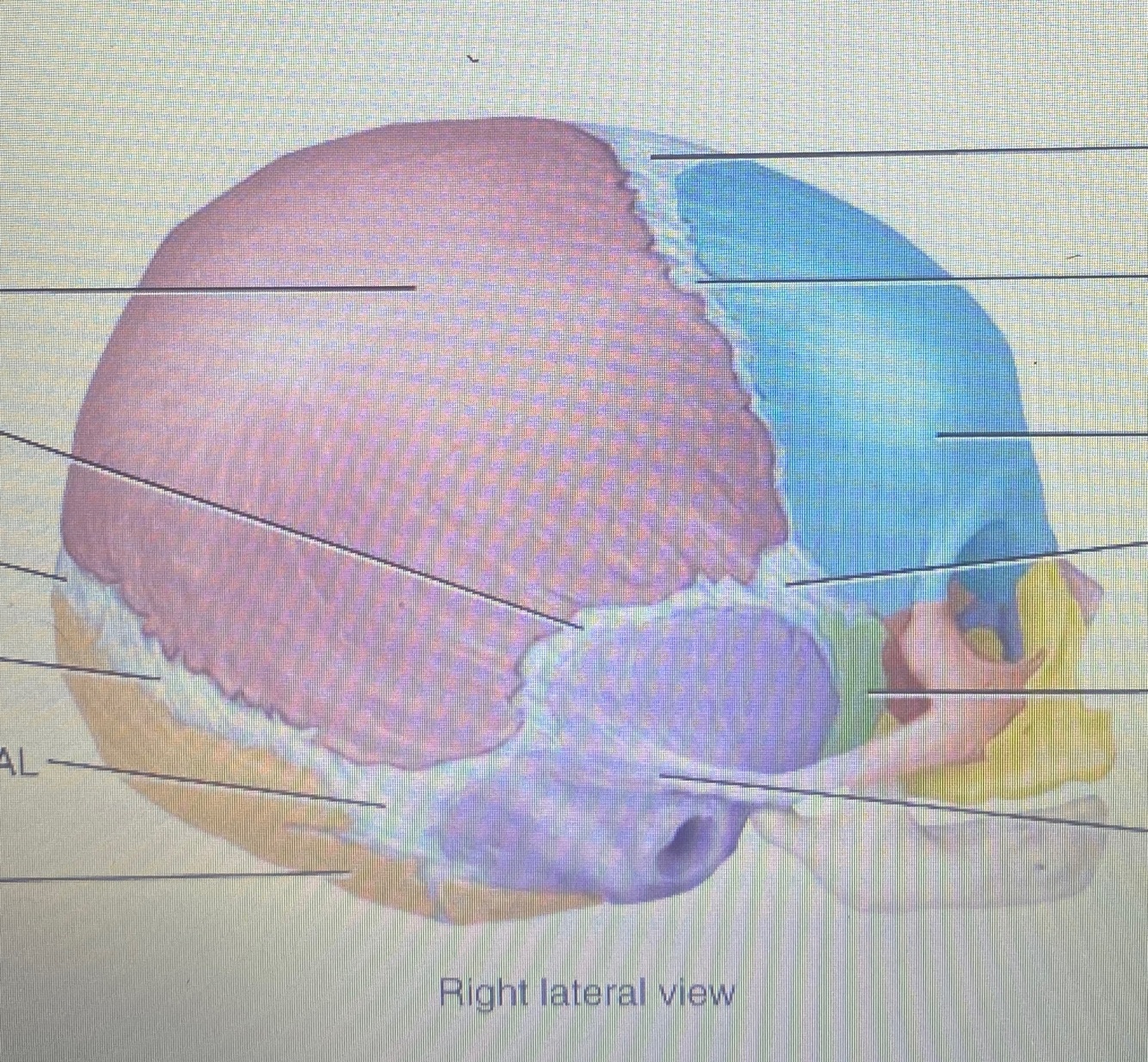 R: Anterior Fontanel, future coronal suture, anterolateral fontanel, sphenoid bone, temporal bone