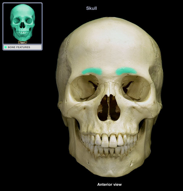 the ridge above the eyesocket indicating the location of the frontal sinus
