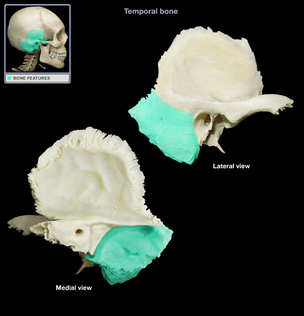 dense bony ridge on the interior surface of the temporal bone, location of the middle and inner ear cavities