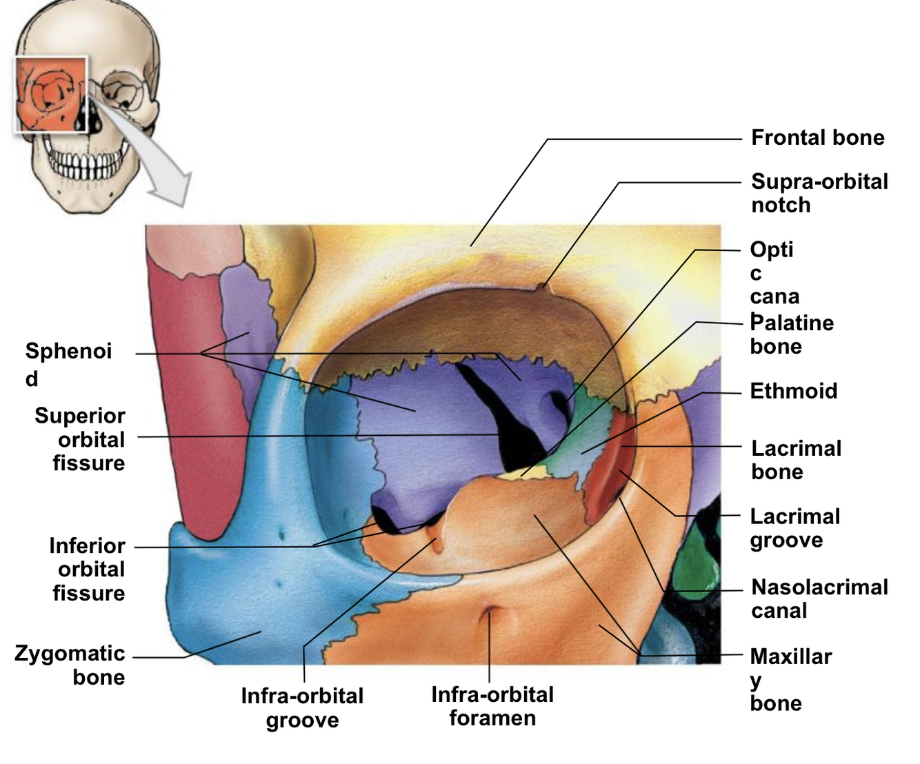 internal bone structure found interiorly to the skull, it borders the lacrimal bone and can be seen through the eye socket