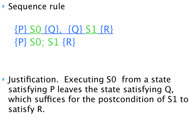 (T/F) Inference rules can allow to strengthen precondition and weaken postcondition.