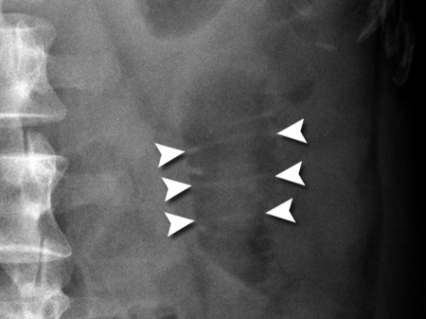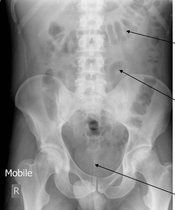 Give the appearance of faeces on an AXR