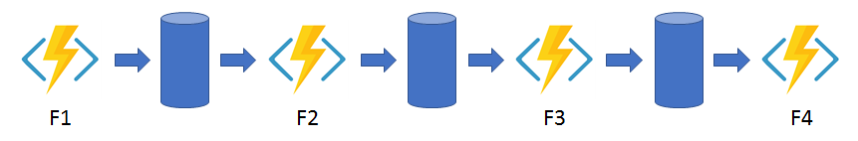 In dit patroon voert de werkstroom een reeks functies uit in een opgegeven volgorde. De uitvoer van een functie wordt toegepast op de invoer van de volgende functie in de reeks. De uitvoer van de laatste functie wordt gebruikt voor het genereren van een resultaat.