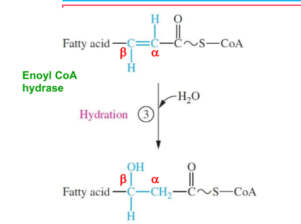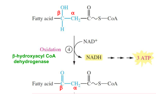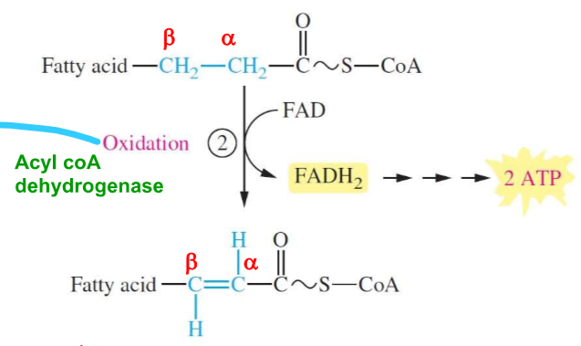 - Uses Acyl CoA dehydrogenase (loss of hydrogens)