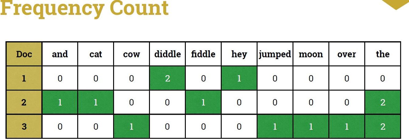 -In the vector-space model, the rows represent documents and the columns represent tokens (vectors). -The elements of the model represent the occurrence of tokens within the text. -A commonly used vector-space model in text analytics is the document-term-matrix.