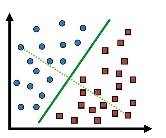 Given a set of data points that belong to either one of two classes, We can draw a line (a hyperplane) that separates the data into two partitions based on the label. *Linearly Separable data