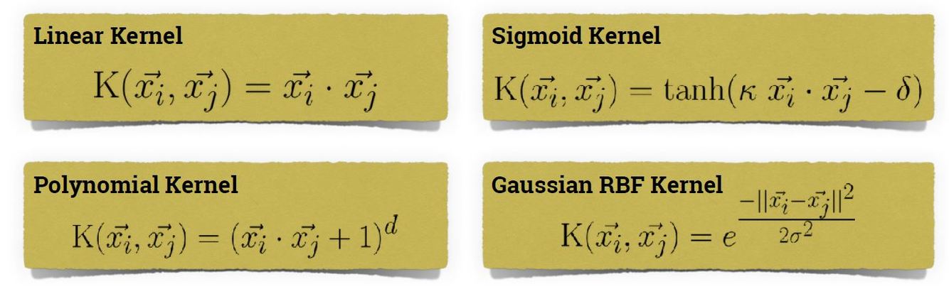 Some common Kernel Functions: