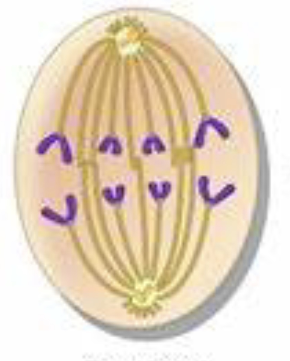 Spindle fibres pull chromatids to opposite poles of the cell.
