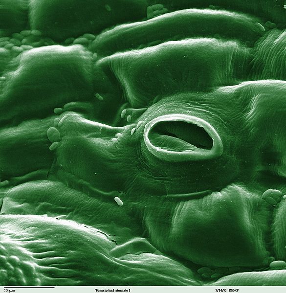 Stomatal pores are tiny holes (you can see them with a light microscope) which allow the movement of carbon dioxide and oxygen gases in and out of leaves.