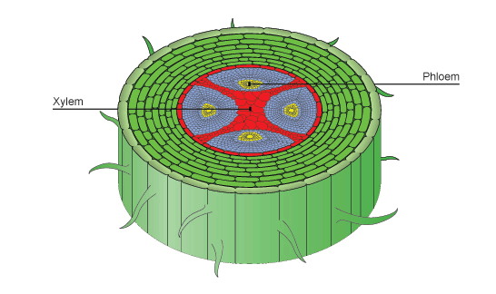 Name parts of the organ system used to transport materials around a plant.