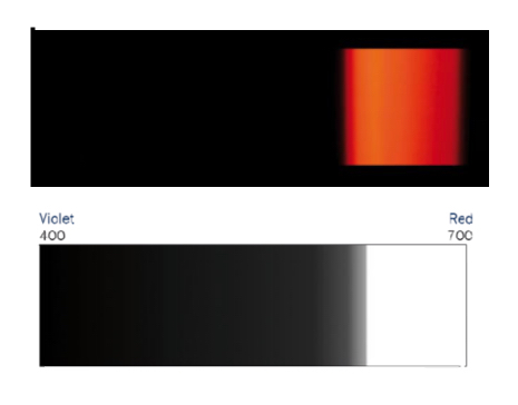 The bands in the red may appear sharper on one side than on the