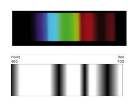 The width and darkness of the absorption bands vary considerably.