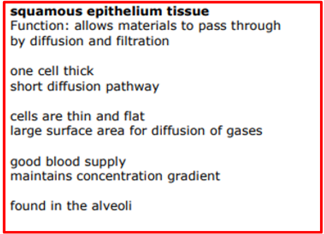 Explain how the structure of the squamous epithelial tissue supports its function in the lungs