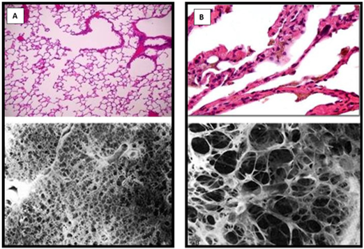B is a sample of lung from someone with emphysema as there are large spaces where the walls of the alveoli have broken down reducing the surface area.