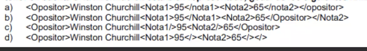 Se han detectado varios errores en la exportación XML de los diferentes listados de notas y le solicitan su ayuda. Sin tener en cuenta si la información está bien resprestnada, ¿Cuál de los siguientes XML está bien formado?