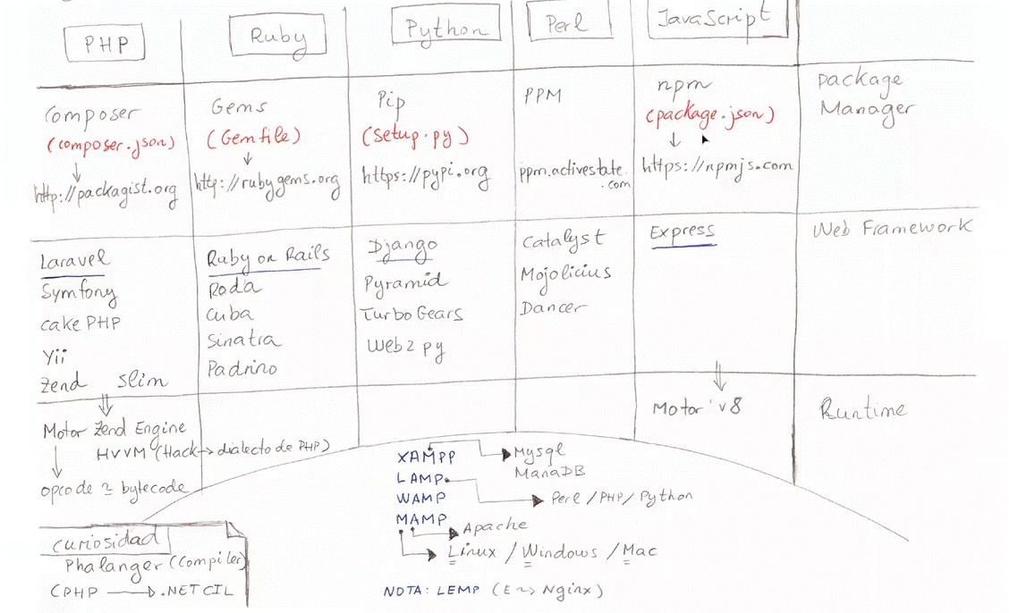 De PHP indica gestor de paquetes y frameworks web