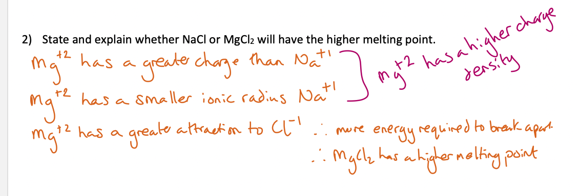 state and explain whether Nacl or Mgcl2 will have the highest melting point