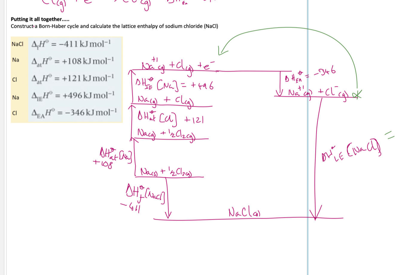 Going clockwise round a Born-Haber cycle, what is the order of the processes