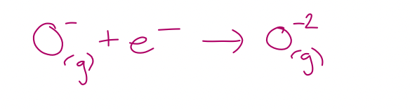 write the equation of the second electron affinity of oxygen - state and explain whether this will be endothermic or exothermic