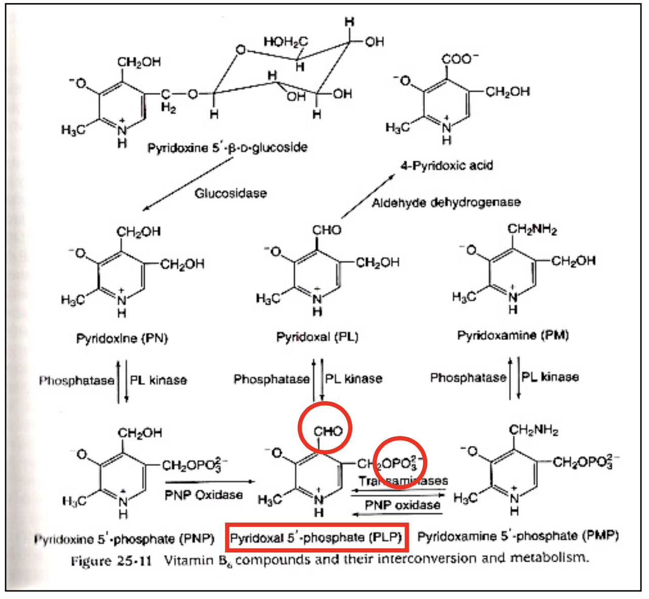 * It is activated once it is phosphorylated to form pyridoxal phosphate (PLP) and is used as a co-factor in enzymes