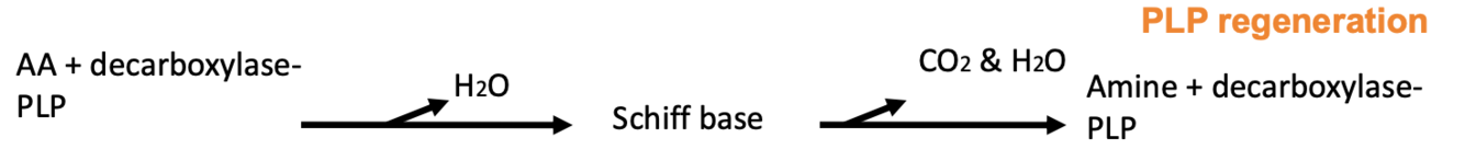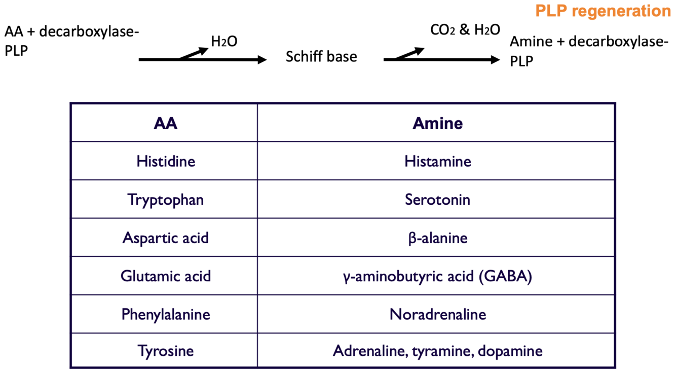 AA decarboxylation - remove carboxyl groups (CO2H)