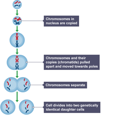 Only one parent is needed in asexual reproduction. There is no fusion of gametes so genetic material does not mix, which means that the offspring produced through this process are genetically identical clones to the parent.