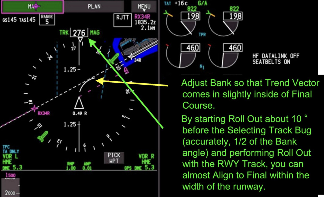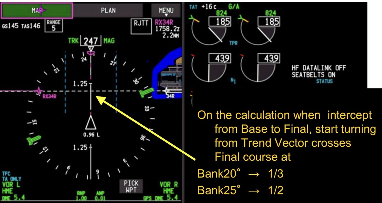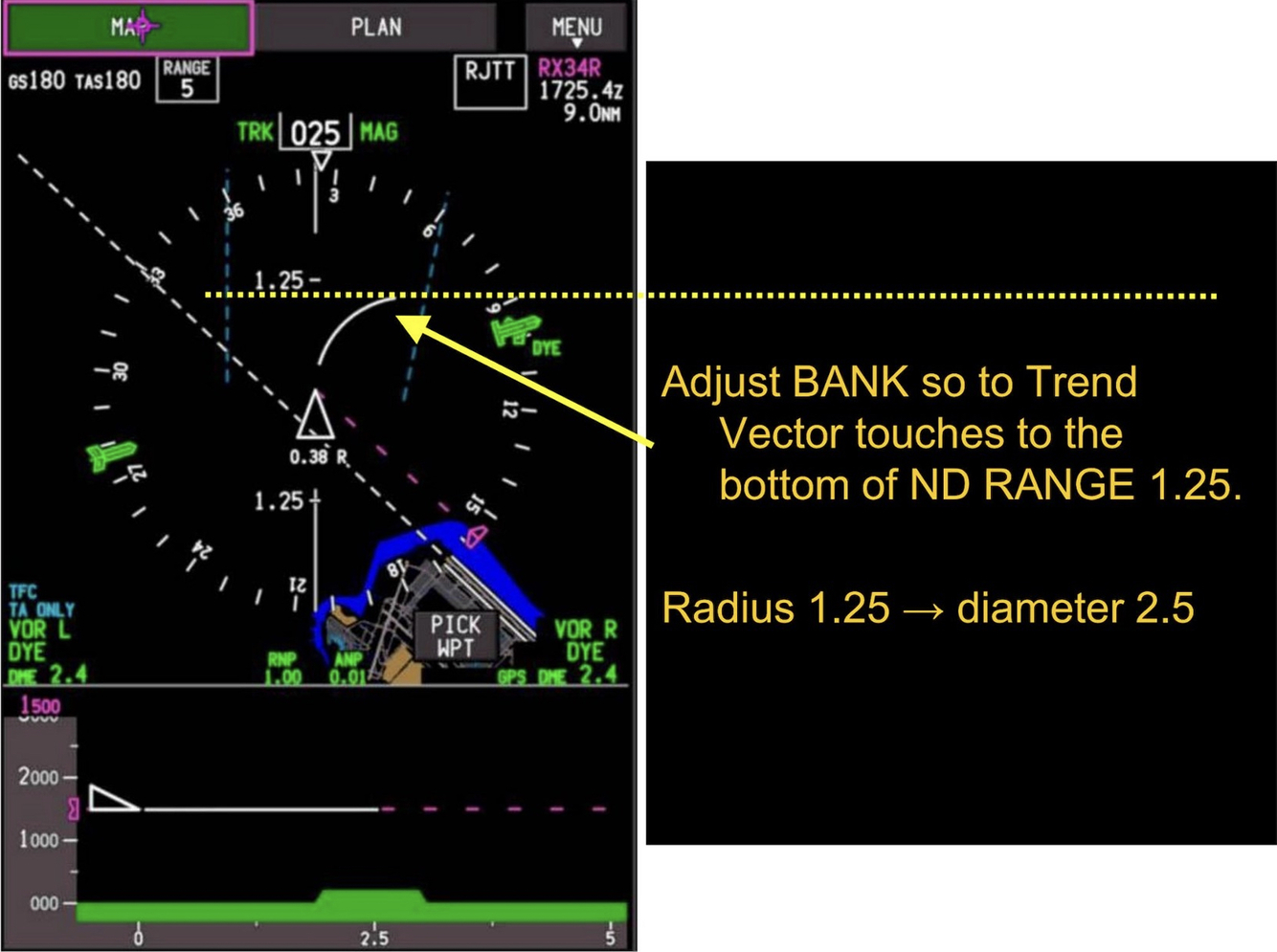 Turning Radius for a 25* turn is 0.61nm = 1/2 of Trend vector
