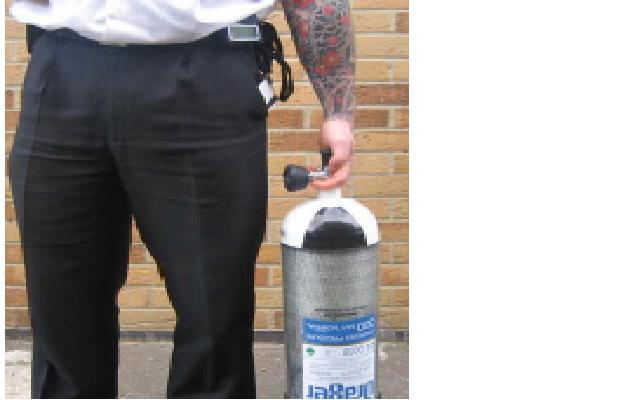 Personnel must only carry one cylinder pack at a time. The twin cylinder pack should be carried by the ‘handle’ fitted to the cylinder valve.