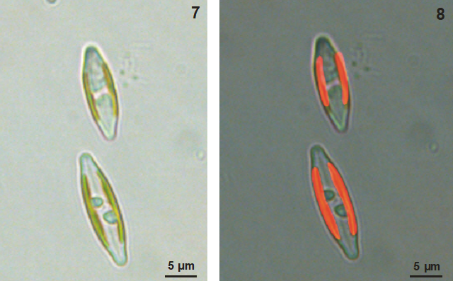 Pennate diatoms: two large chloroplasts, plate-like, parietal and often lobed