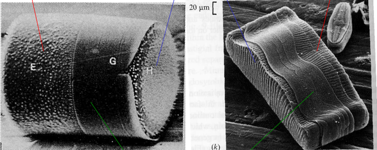 Green: Cingula: silicious rings (girdle band) located between the valves