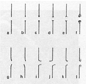 Left to right: parallel, radiate, lineate parallel, lineate radial