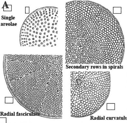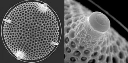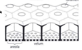 Areolae of centric diatoms can assume the appearance of hexagonal chambers (LOCULAE) with a partially close outer surface (roof), characterized by the presence of a large round hole, called foramen