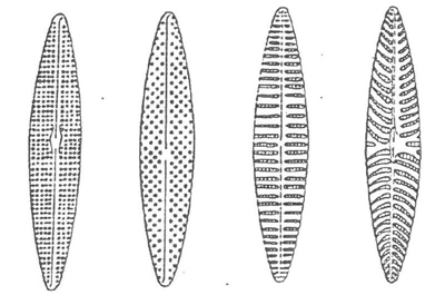 The areolae in the pennate diatoms can be arranged in rows to form the STRIAE
