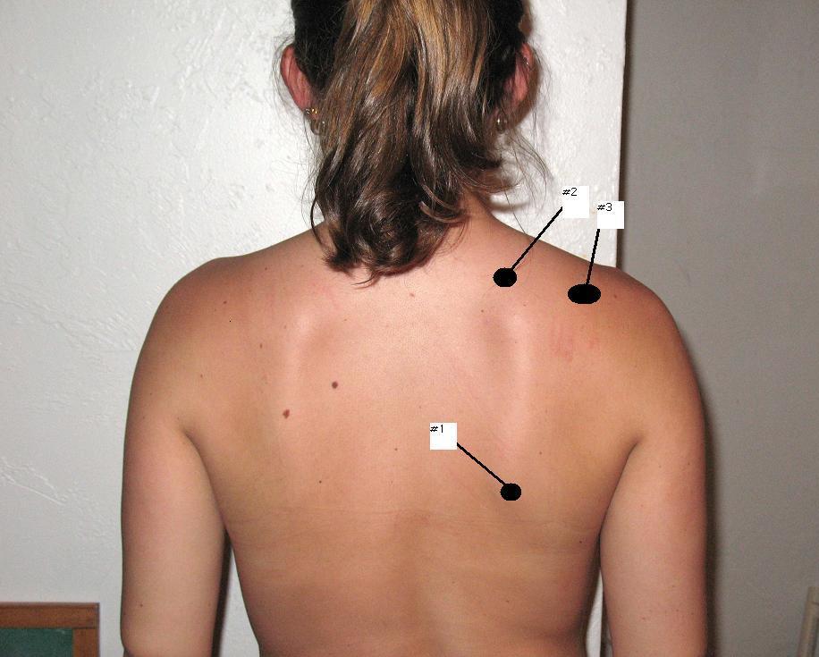 btw spine and scapula on the level of shoulders
