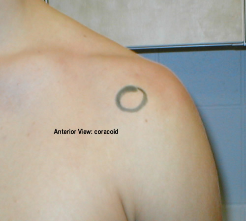 Palpation of coracoid process of the scapula?