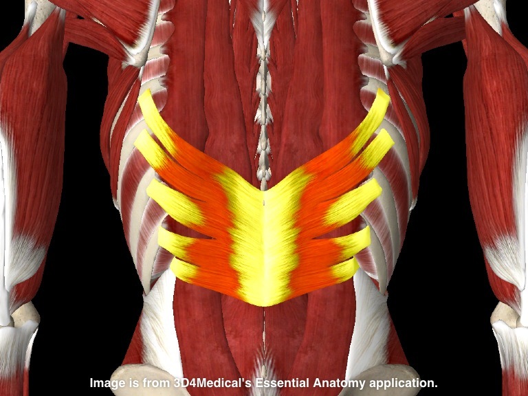 Orgin-Spines of T7-12 and Thoracolumbar fascia