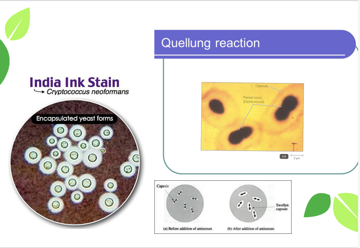 In this method two dyes, crystal violet and india ink are used. The capsule is seen as a clear halo around the microorganism against the black background.