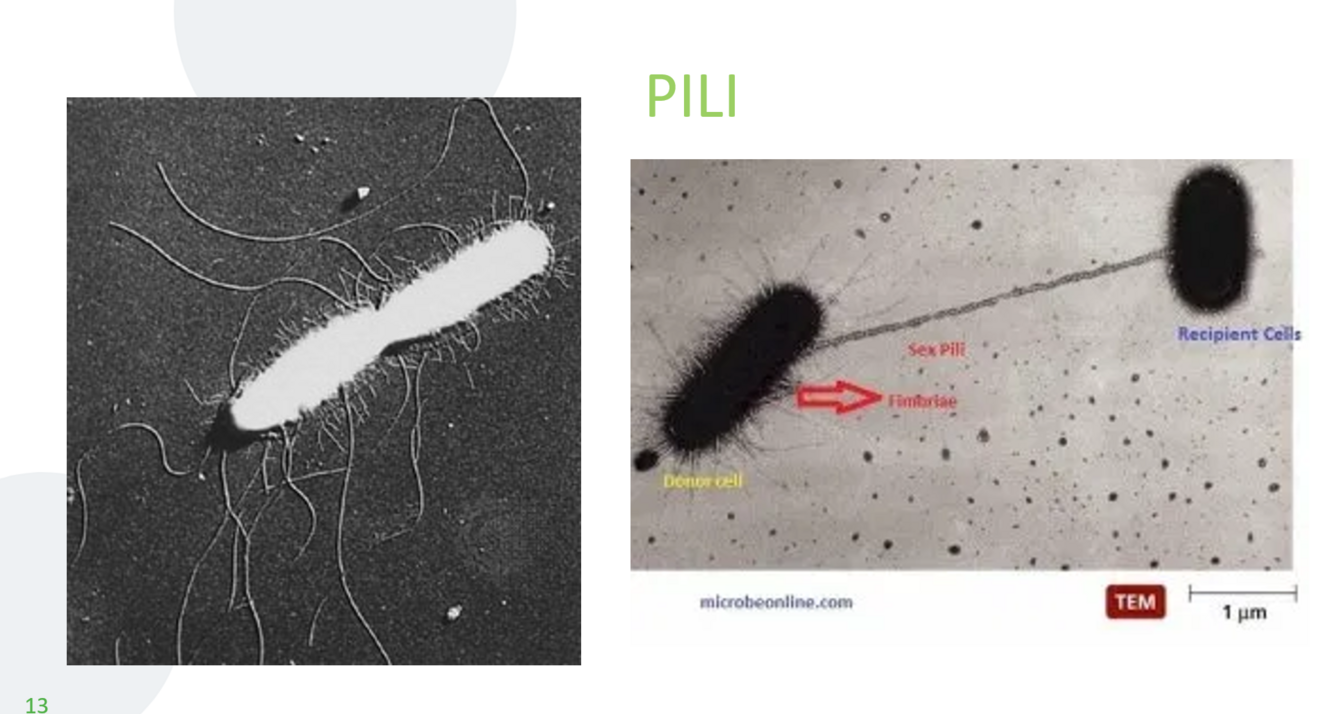 Sex pili (conjugation tube) – facilitate the transfer of DNA between donor and recipient bacteria