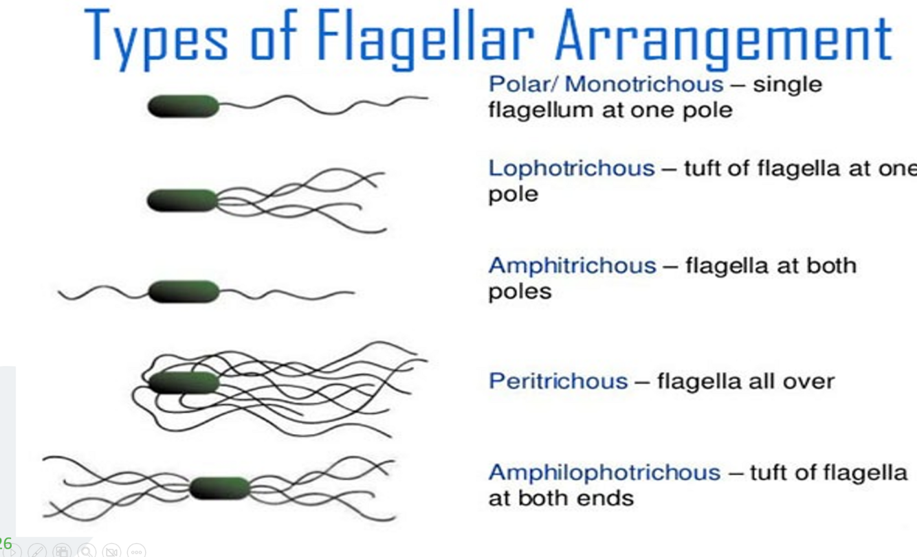 Basal body (motor): anchors flagellum to cell membrane and cell wall. (300 RPS)