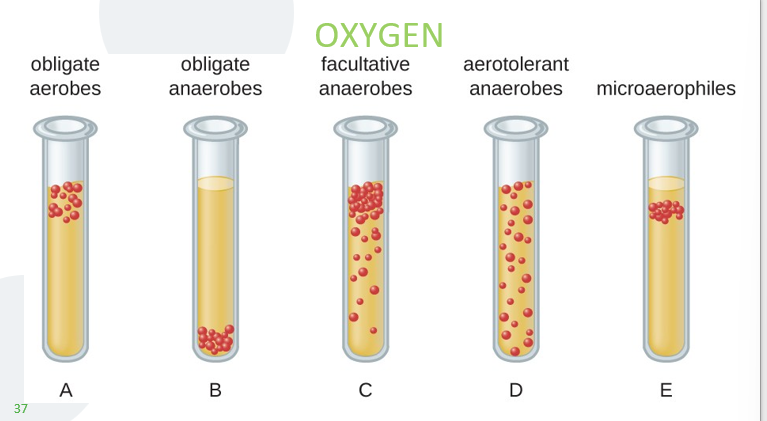 Obligate aerobes require the presence of atmospheric oxygen (20%) for their metabolism.