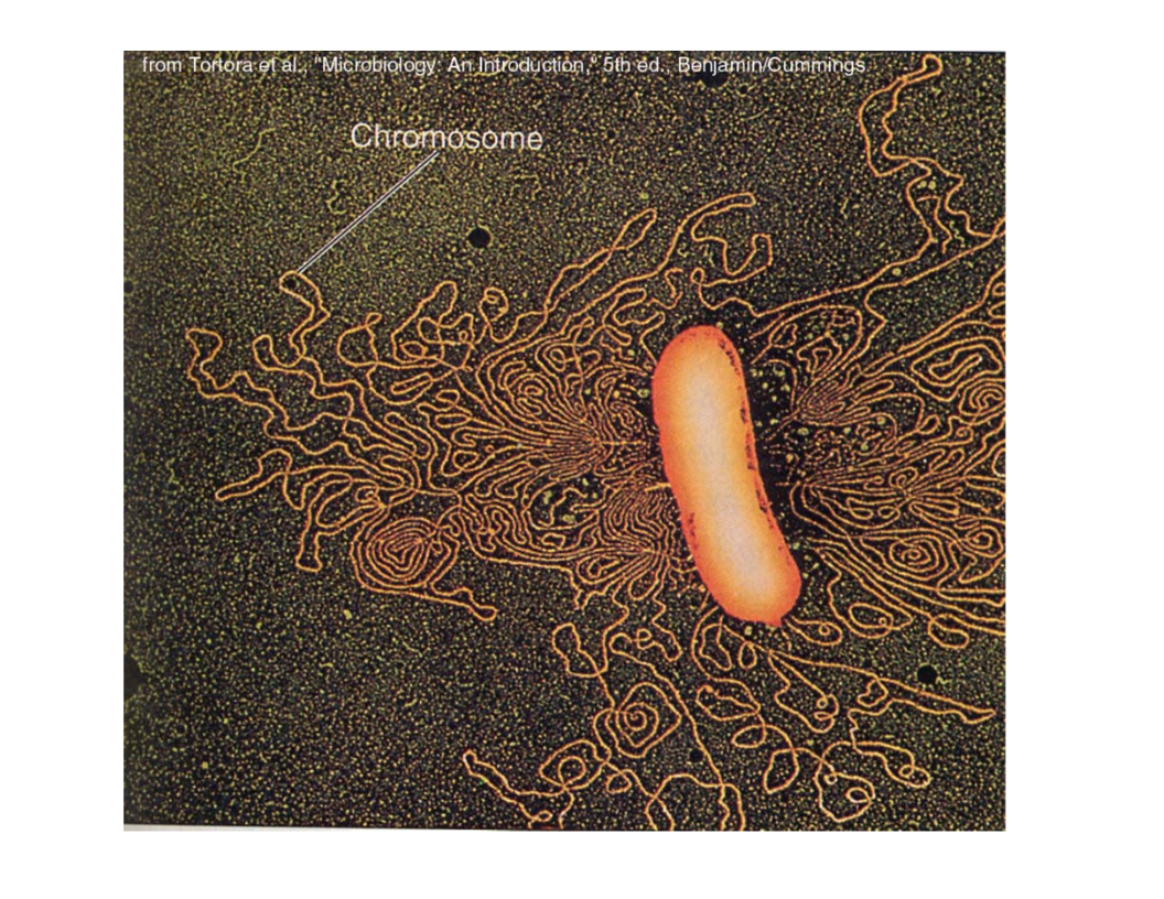 E. Coli chromosome is 1 mm long with 4.6 megabases