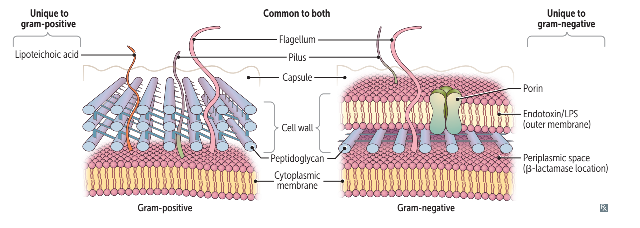 waht components of cell walls are common to both gram - and gram + bacteria?