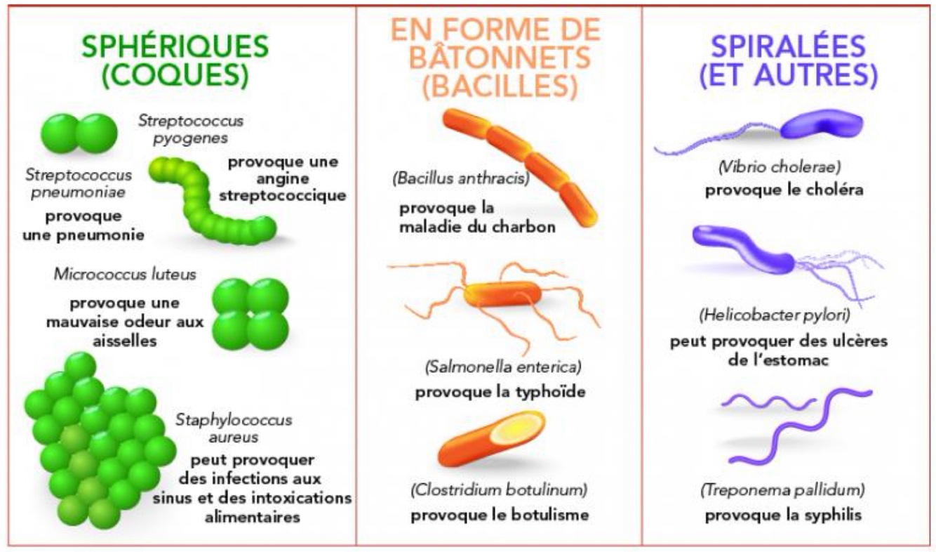 Structure d’une bactérie: (3 types)