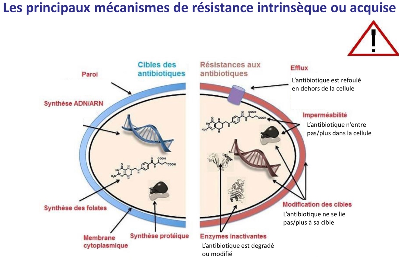 3 moyens de résistance aux antibiotiques acquise par les bactéries: