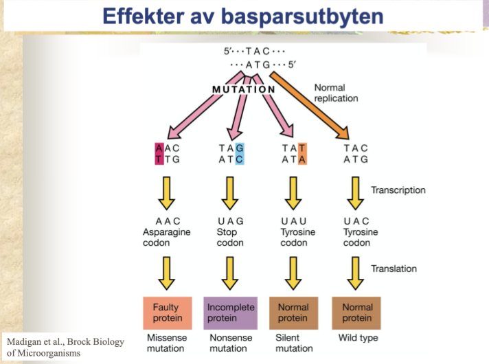 Normalt protein: UAU istället för UAC - samma - ingen fenotypförändring - tyst mutation