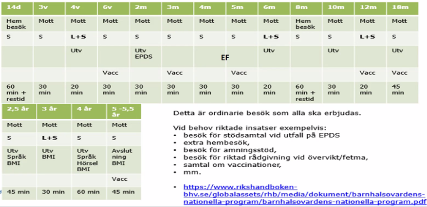 Planerade träffar enligt barnhälsovårdsprogrammet