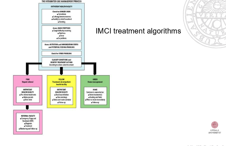 Exempel här är alltså en algoritm. T.ex. tittar man efter danger signs –> in till sjukhus direkt.