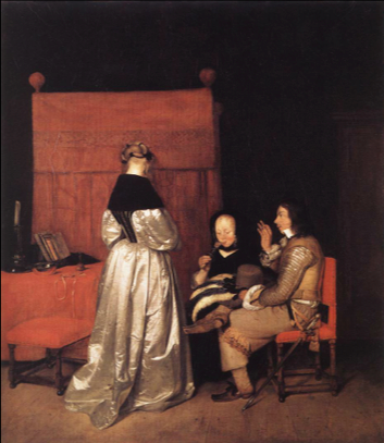 Gerard Terborch (1617–1681), Gallant Conversation (“The Parental Admonition”), 1654–1655. Oil on canvas, 70 x 60 cm, Staatliche Museen, Berlin